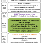 Surgiu assim a OSHO Semana dos Segredos da Meditação, repleta de propostas que aliaram as OSHO Meditações Ativas as OSHO Meditações que não são saboreadas com tanta regularidade aqui no OSHO Centro de Meditação Darshan Zen. E, no meio de tanta abundância, ainda celebrámos o Dia Mundial da Amizade com a preciosa OSHO Meditação do CoraçãoTM.